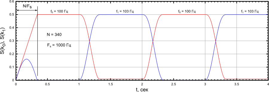 Рисунок 9: Чередование сигналов с контроллируемыми частотами