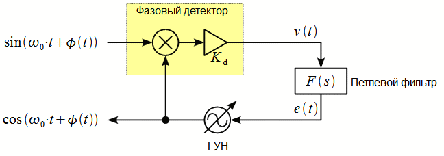 и сигнала зависящего от разности фаз входного сигнала и ГУН.