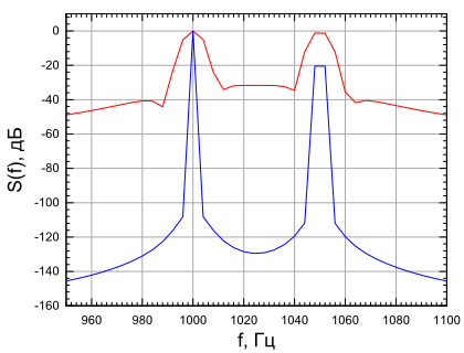 Уровень потерянной гармоники незначительно ниже реального уровня (примерно на 2...3 дБ). Но наблюдается расширение основного пика при полифазной обработке.